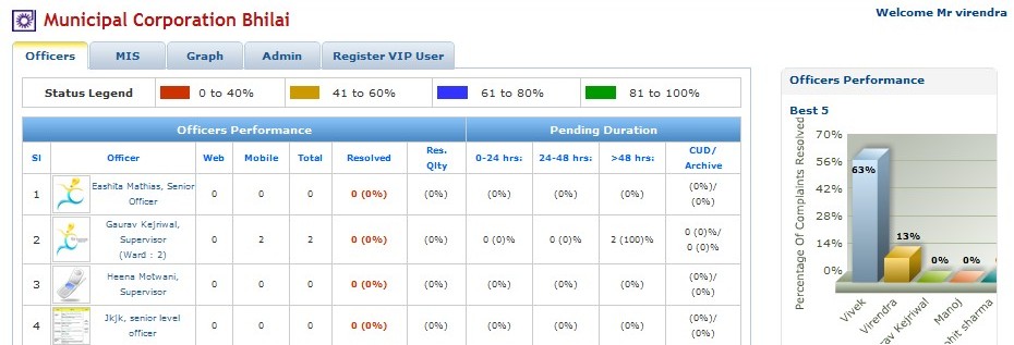 The CMS has a sophisticated Automatic routing algorithm (ARA) running at the back end to precisely route a complaint to the official concerned. It also keeps track of complaints action status and does the escalation to the higher officials if a complaint is not resolved within specified time limit. Detailed complaint analysis through intuitive dash boards is also available for route cause analysis of the complaints, potential areas of improvement and identifying performance of the officials.